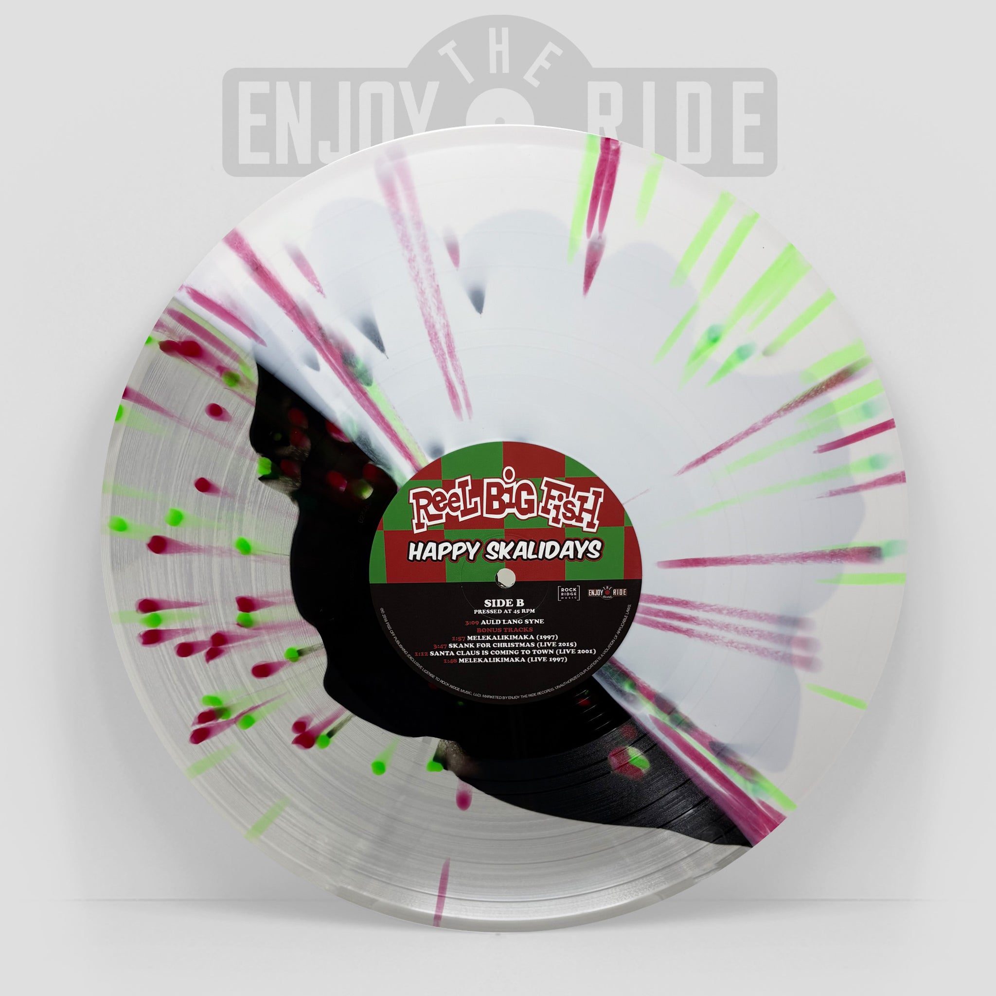 Available Variants Happy Skalidays Twist, Limited to 100 (ETR Exclusive) Strict Limit of 2 per color per customer/household There will also be a limited number of test pressing bundles available on release day. Each test pressing bundle will include one copy of the following items: Test Pressing housed in an Alternate Art Fold-Over Jacket, Happy Skalidays Twist, Ugly Christmas Sweater CIC Split Splatter, & Candy Cane Cornetto. Strict limit of 1 bundle per customer/household The Fishmarket (Reel Big Fish's webstore) will have copies of Candy Cane Cornetto in stock as well. |