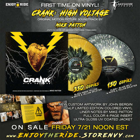 Enjoy The Ride Records in conjunction with Lakeshore Records is proud to announce the first ever vinyl release of the Crank: High Voltage Original Motion Picture Soundtrack, composed and performed by Mike Patton.